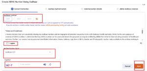 👉 મિત્રો હવે તમારે અહીં આધાર નંબર નાંખવાનો રહેશે અને ત્યાર પછી નીચે કેપ્ચા કોડ ભરીને Next બટન ઉપર ક્લિક કરવાનું રહેશે તમારે મિત્રો.