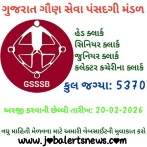 GSSSB CCE મોટી ભરતી ૨૦૨૬ જાહેર હેડ ક્લાર્ક, સિનિયર ક્લાર્ક અને જુનિયર ક્લાર્કની ૫૩૭૦ ખાલી જગ્યાઓ માટે ભરતી નોટિફિકેશન,