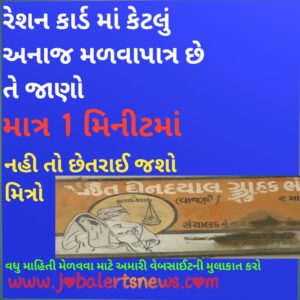 મિત્રો આ લેખમાં તમને જાણવા મળશે કે તમારા રેશનકાર્ડમાં તમને કેટલો જથ્થો મળવાપાત્ર છે અને તે તમે જાતે ચેક કરી શકો છો, અને જેથી જેમાં ઘઉં, ચોખા, બાજરો, ખાંડ, તેલ અને દાળનો જથ્થો કેટલા કિલો તમને મળવા પાત્ર છે તે બધુ જ તમે ચેક જાતેજ ચેક કરી શકો છો મિત્રો .