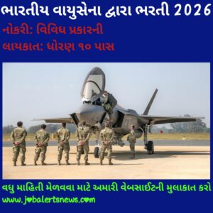 ઉમેદવારો ભાઈઓ તથા બહેનો ખાસ નોંધ: ભારતીય વાયુસેના આ ભરતીમાં ફોર્મ ભરવા માટે છેલ્લી તારીખ 2૩ ફેબ્રુઆરી 2026 છે આવે એના પેલા ફ્રોમ ભરી દેવો,જેથી છેલ્લી ઘડીએ સમસ્યાથી બચવા વહેલી તકે ફોર્મ ભરી દેવું.
