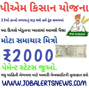 નોધ : મિત્રો આ માહિતી ખેડૂત ભાઈઓ માટે તૈયાર કરવામાં આવી છે, જે PM Kisan યોજનાં  22મો હપ્તો, પૈસા ટ્રાન્સફર અને અરજી કેવી રીતે કરવું તેની માહિતી વિગત વાર જોવા માટે PM Kisan ઓફિસિયલ વેબસાઇટ પર અથવા નજીકના કૃષિ વિભાગની કચેરી પર તપાસ કરવી જરૂરી હોય છે.